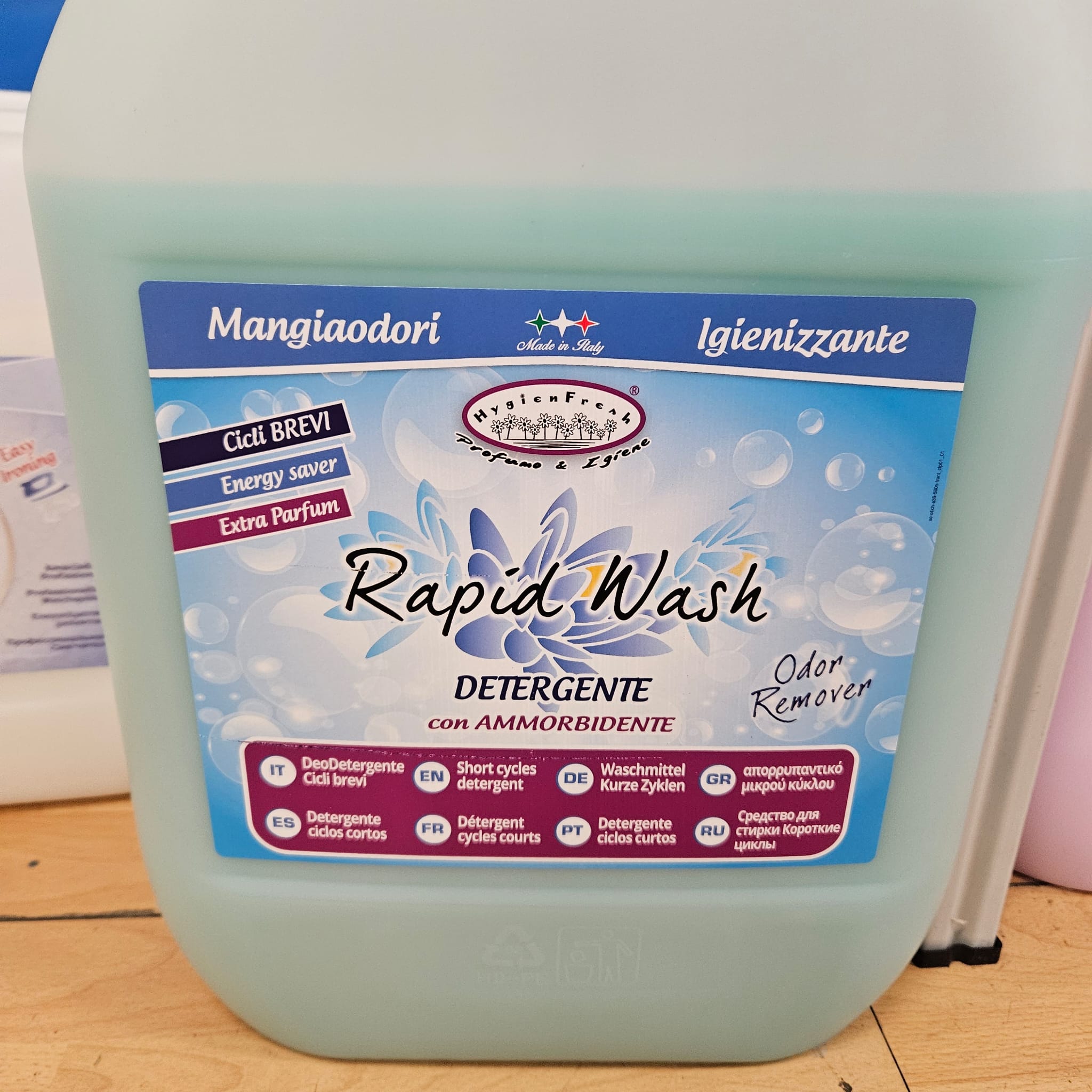 Detergente Rapid Wash perfetto per i cicli brevi grazie alla sua formula con ammorbidente e tecnologia "Odor Remover" per eliminare i cattivi odori.